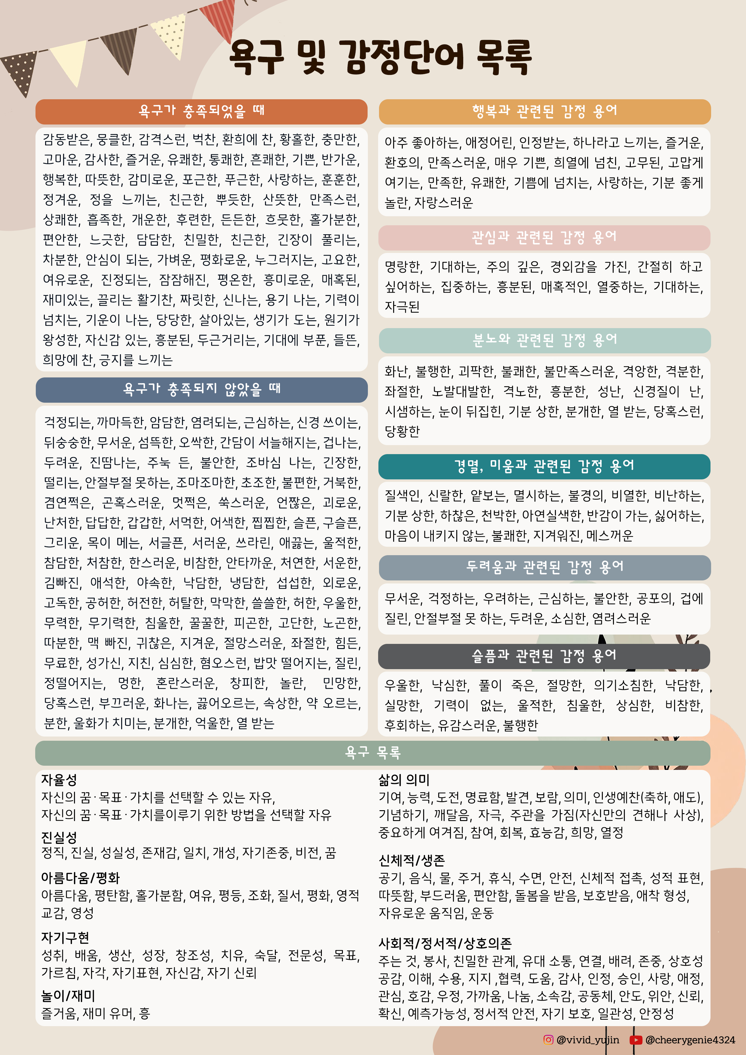 혹시 나처럼 감정일기를 쓰고 싶으신 분들을 위해 내가 만든 욕구 감정 단어 목록표를 공유한다~